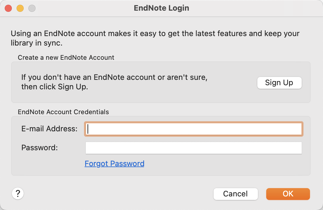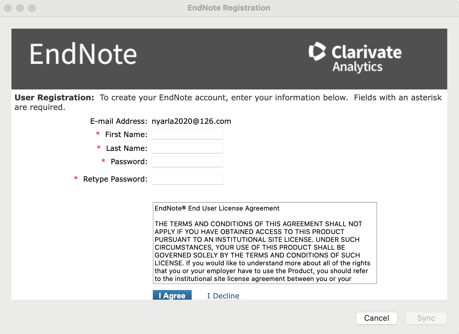 先注册您的 EndNote 账户并登录,才可以使用软件的同步和共享功能。若无此需求则不必注册。